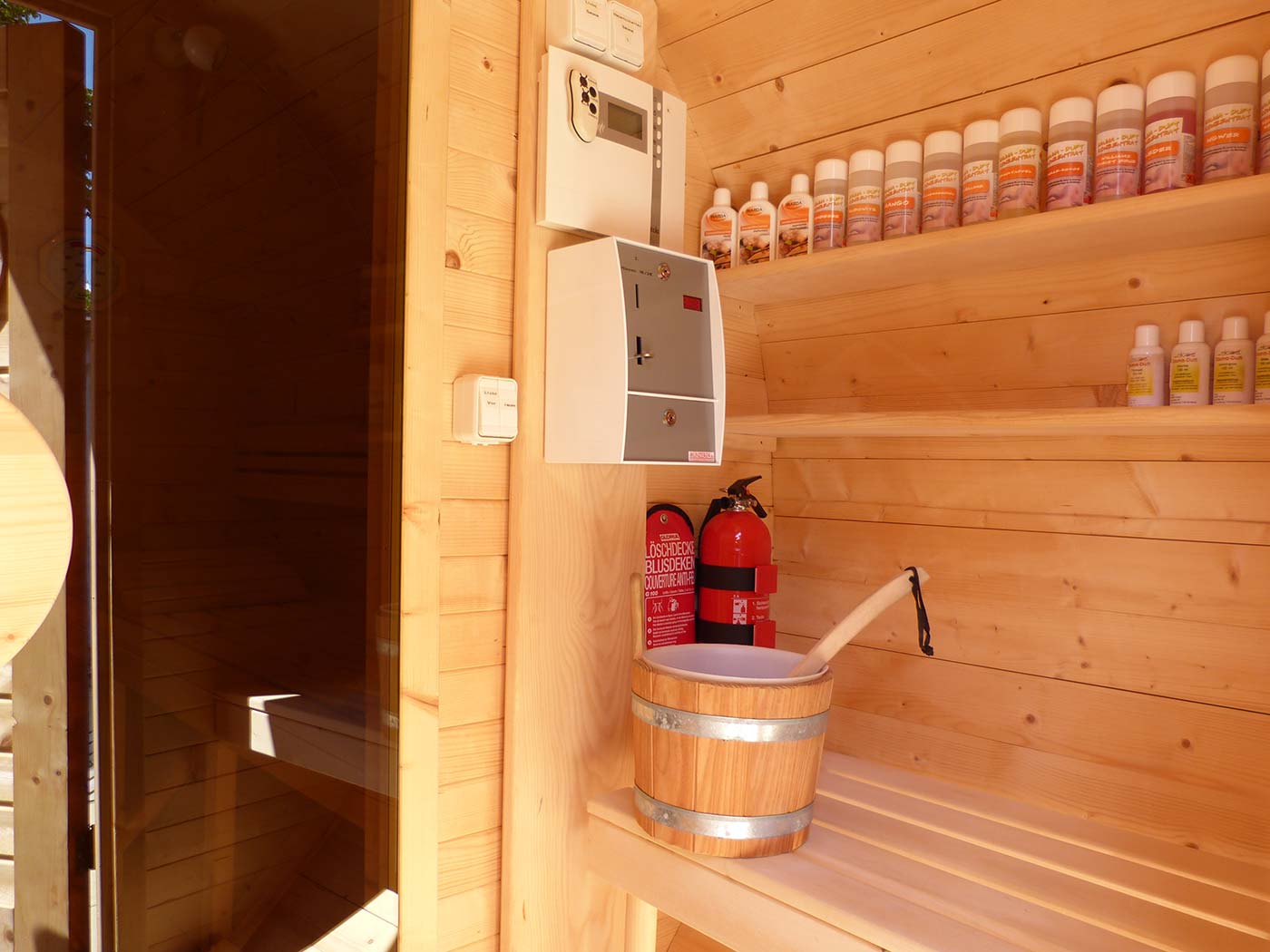 Sich wohlfühlen, entspannen, vom Alltag abschalten – ein Saunagang darf dabei im Winter- und Sommerurlaub nicht fehlen. Ihren Körper und Geist können Sie in unserer exklusiven Holzfass-Sauna verwöhnen. Die im Garten des Ferienhauses freistehende finnische Sauna für bis zu 4 Personen verfügt über einen runden einzigartigen Saunaofen. Hier können Sie bei wechselnden Aufgüssen schwitzen und dabei aus etwa 20 duftenden Essenzen wählen.